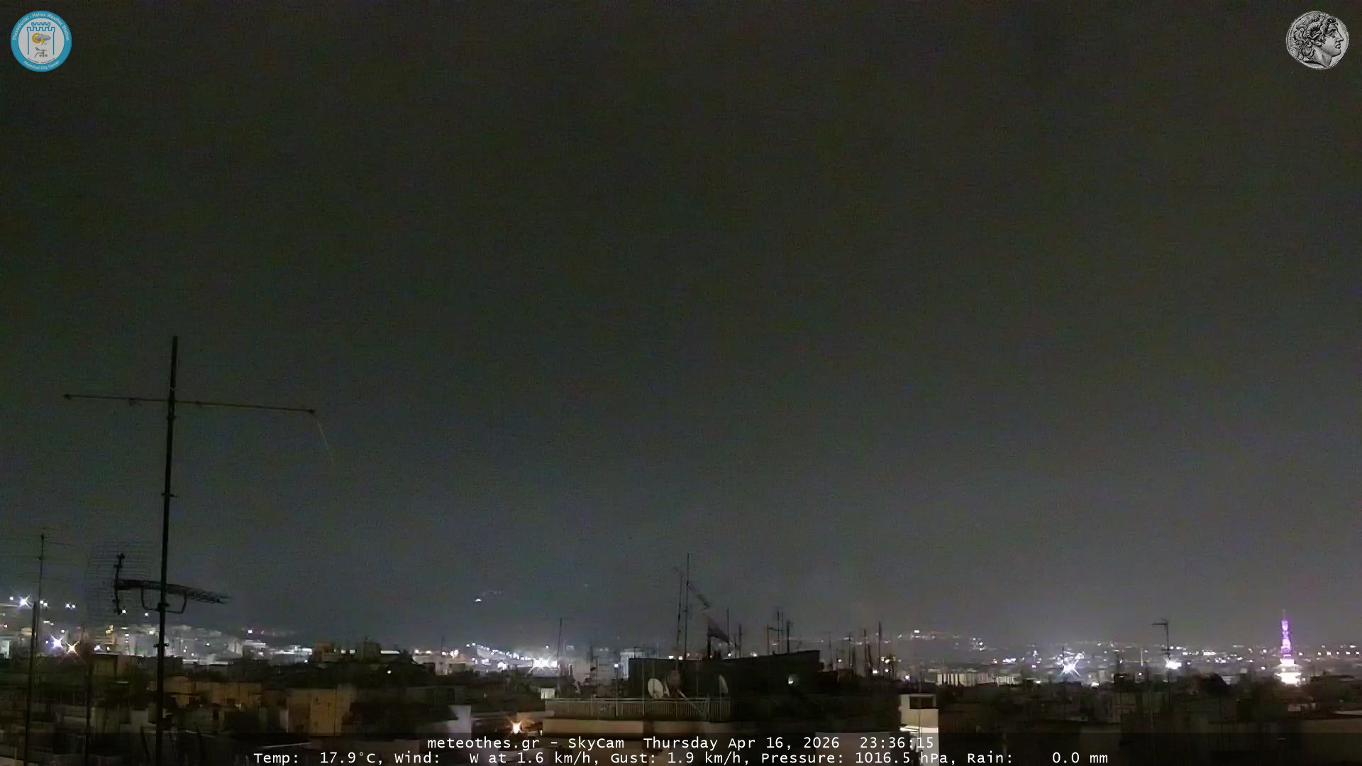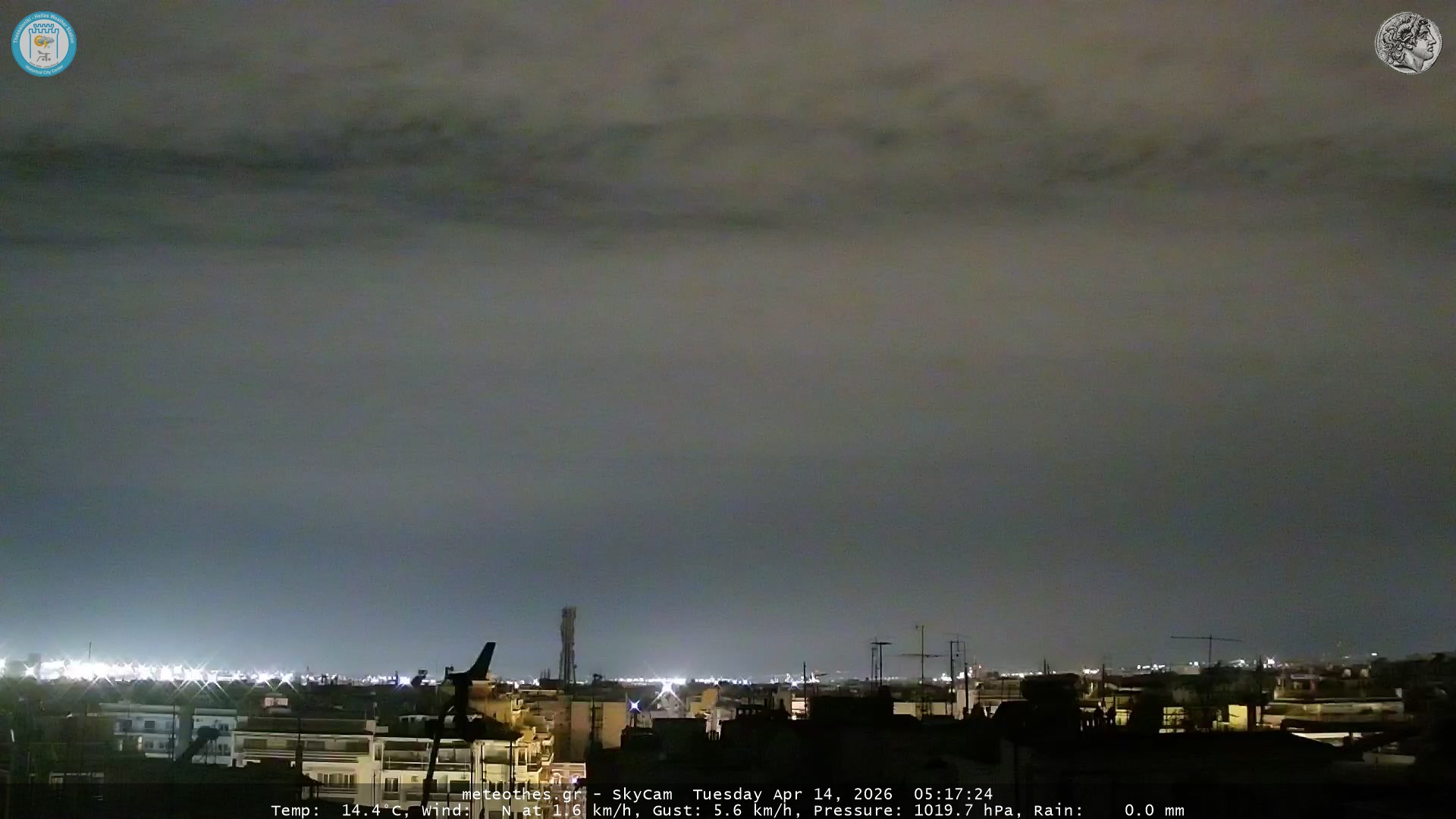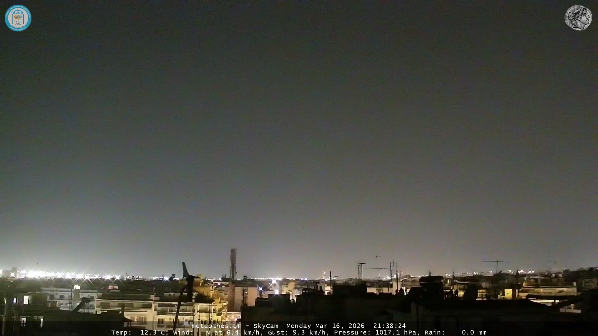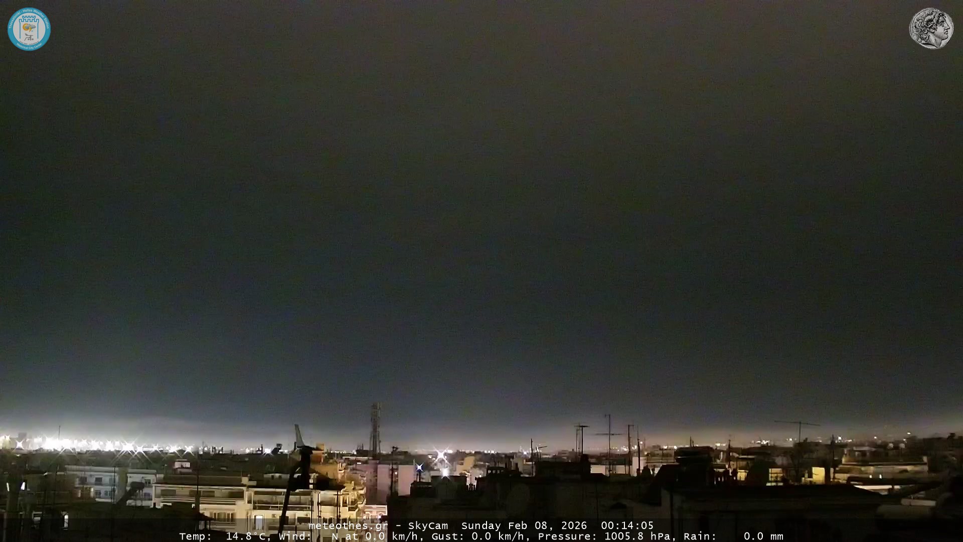 Ζωντανή Ροή Περιστρεφόμενης Κάμερας Ουρανού Ιστορικού Κέντρου Θεσσαλονίκης - Πατήστε |