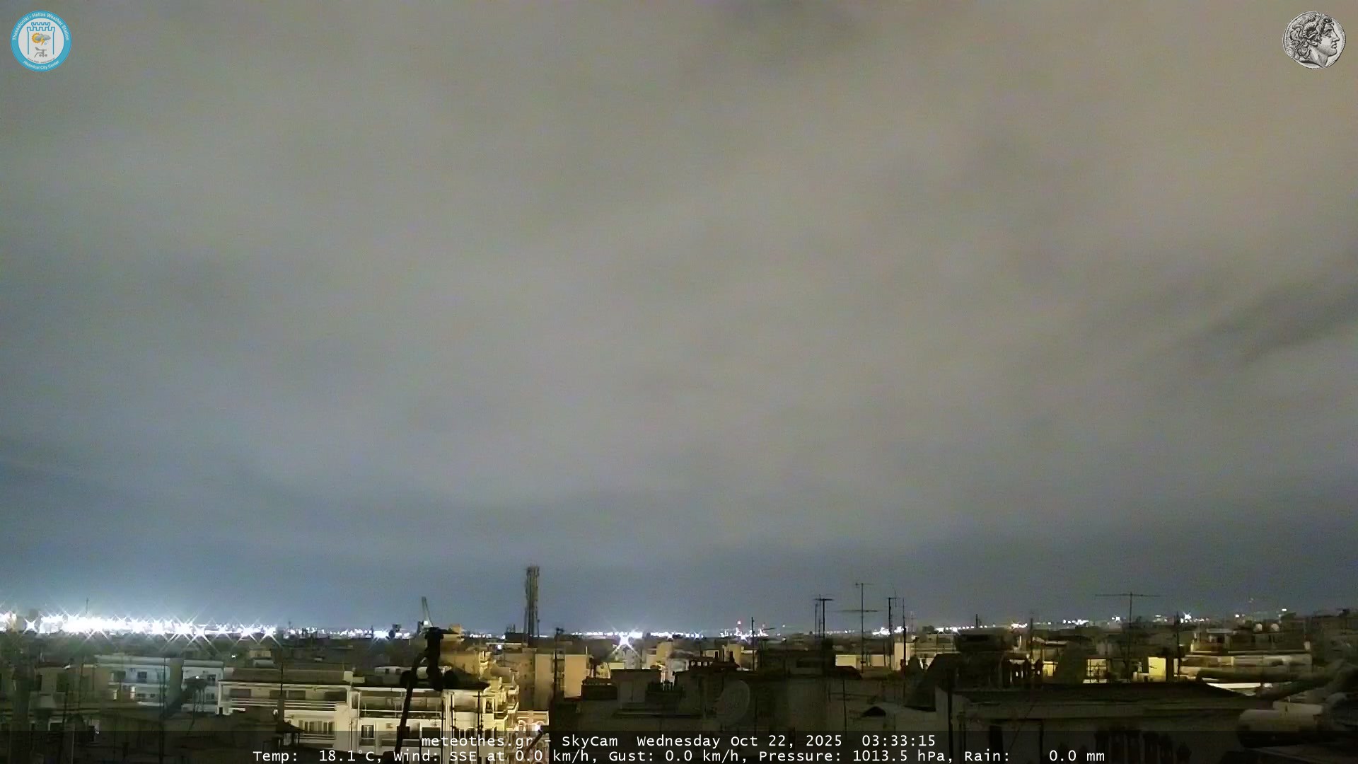 Ζωντανή ροή από τη Θεσσαλονίκη! Η λειτουργία του meteothes Panorama Live έχει ανασταλεί, λόγω βλάβης της Περιστρεφόμενης Κάμερας! Θα αποκατασταθεί το συντομότερο δυνατό! |