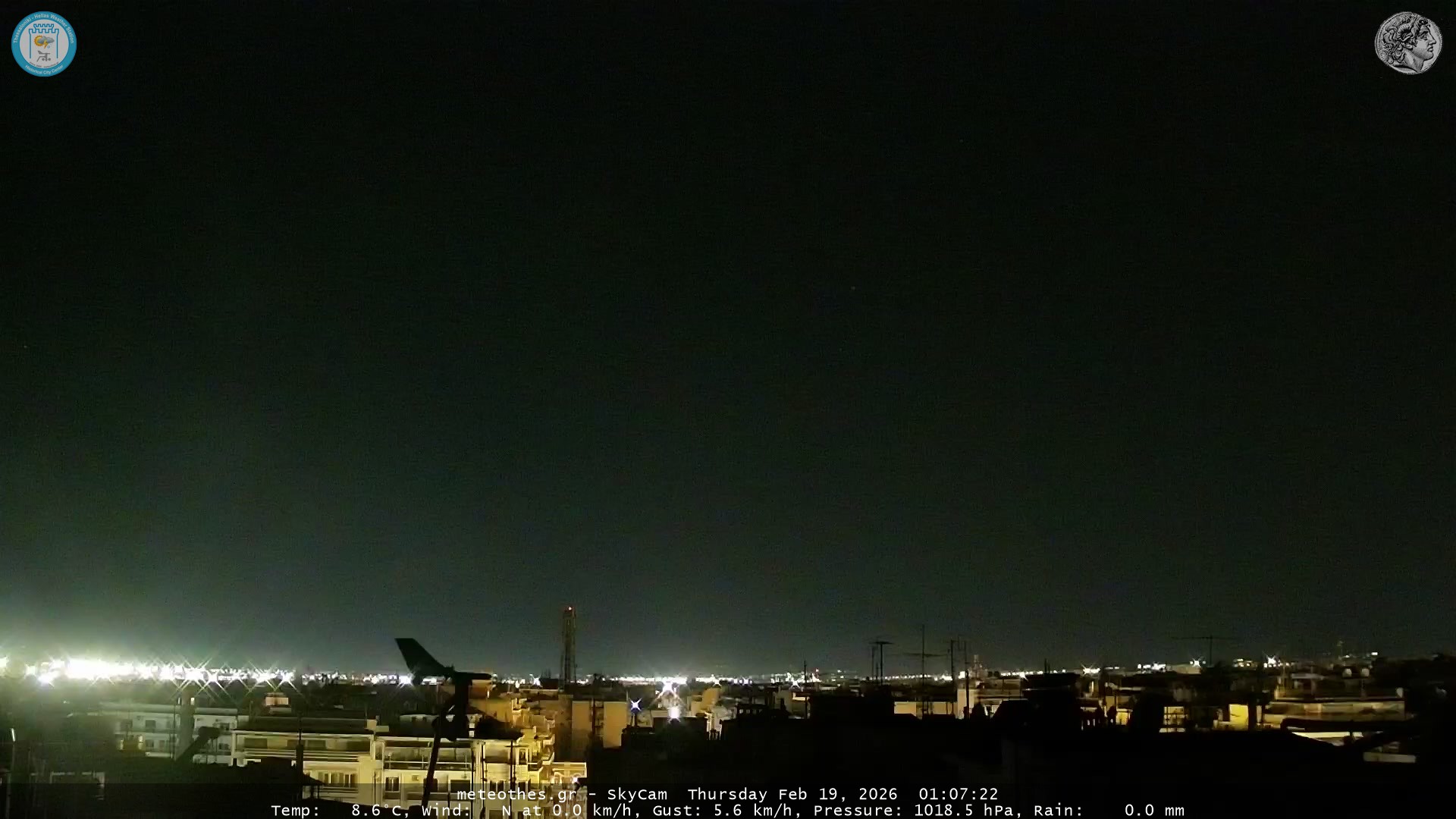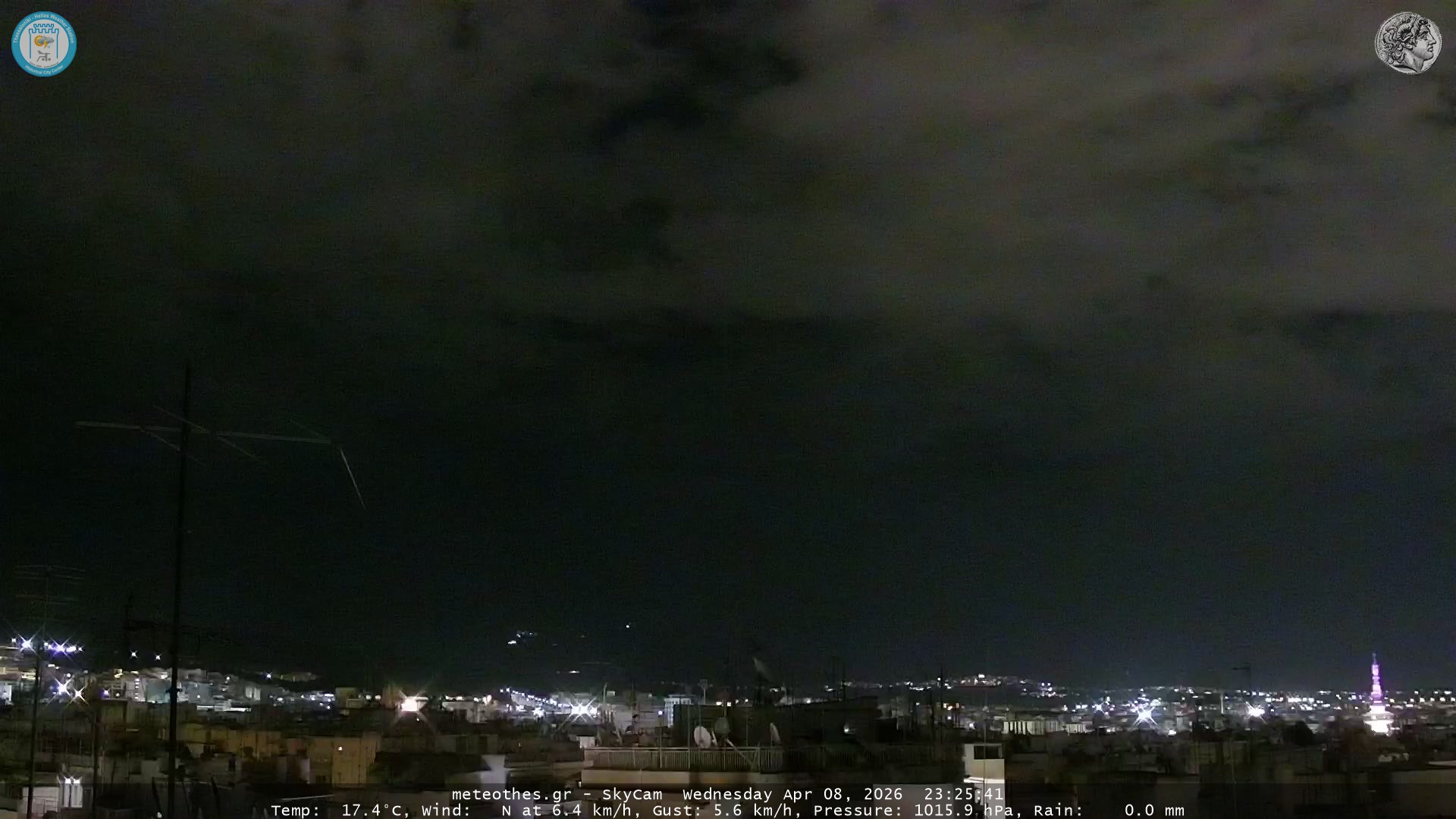 Ζωντανή Ροή Περιστρεφόμενης Κάμερας Ουρανού Ιστορικού Κέντρου Θεσσαλονίκης - Πατήστε |