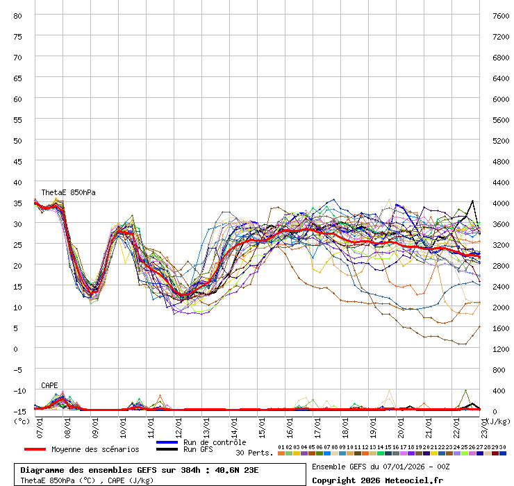 Pressure(Prs) (sea level), Theta-E(tE) at 850 hPa & CAPE(C)